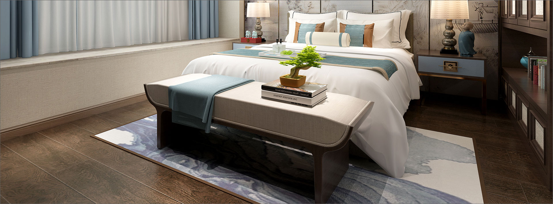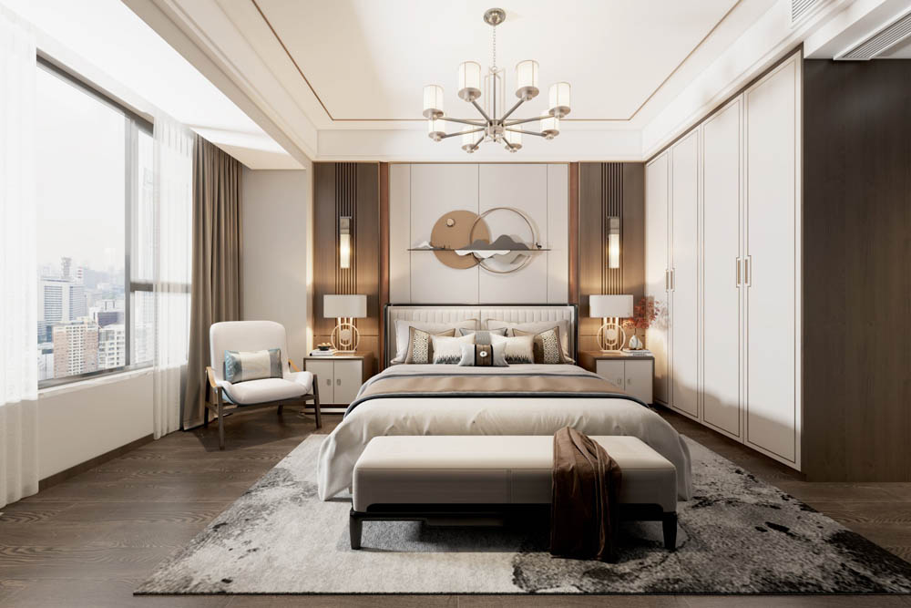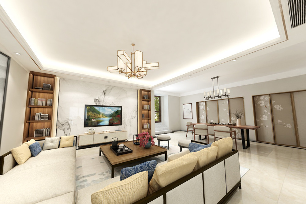 新中式風(fēng)格是富含千年底蘊(yùn)的東方中式風(fēng)格與摩登時(shí)尚的現(xiàn)代風(fēng)格彼此相遇結(jié)合,其精華之處在于以“一器一物皆是景,細(xì)微之處有乾坤”的古意為出發(fā)點(diǎn),追隨時(shí)代的潮流,功能空間相互滲透,色彩空間相互碰撞,消除了傳統(tǒng)中式風(fēng)格的沉悶和厚重,力圖在惹人癡迷的現(xiàn)代輕奢簡(jiǎn)約中彰顯出傳統(tǒng)中式意蘊(yùn)的雅致逸趣。