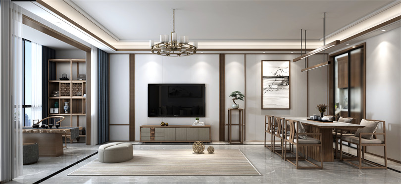 新中式風格是將傳統的中國元素通過提煉融合到現代人的生活環境中和審美習慣的一種新型的裝飾風格,這樣的設計既能體現傳統中國元素,又能表現出現代人對于古典文化的喜愛。