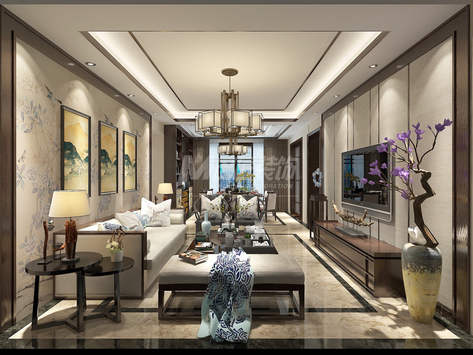 柳州201-300平米新中式風格大信海岸家園家裝設計效果圖
