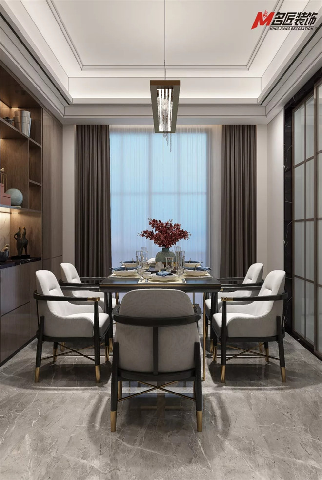 新中式核心在超越傳統進行創新創作,它可以兼容北歐,美式、簡歐、地中海等任何一種風格。也帶著業主的想法為房子打下自己的烙印,令空間既有中式風格的同時又不失時尚的元素。