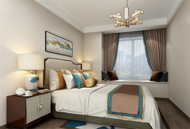 在空間結構上十分簡潔,增加空間的明快度,同時,合理的動線設計令空間動靜有序,分區也變得十分合理;設計師將中式元素,融合現代設計手法,意在突出新中式的文化內涵與意境