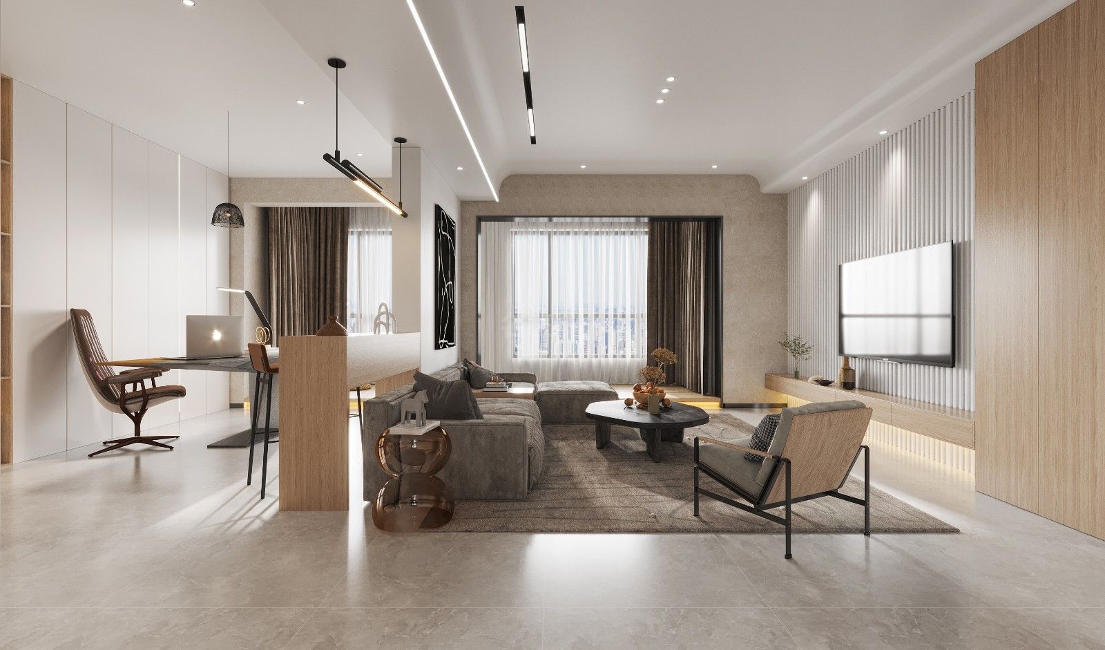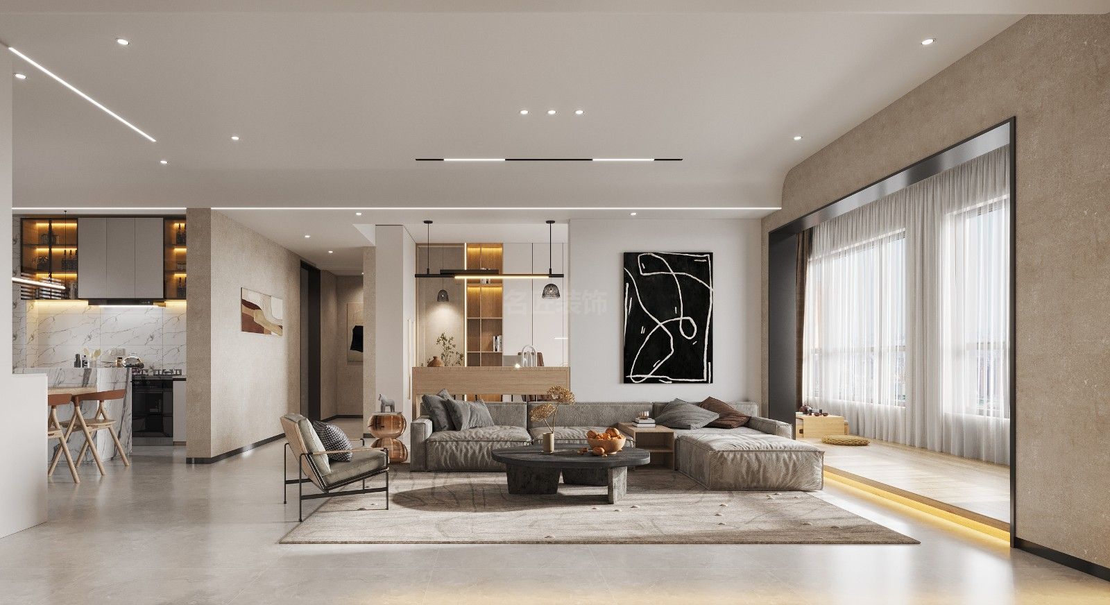 海口京江廣場復(fù)式280平新美式混搭新中式