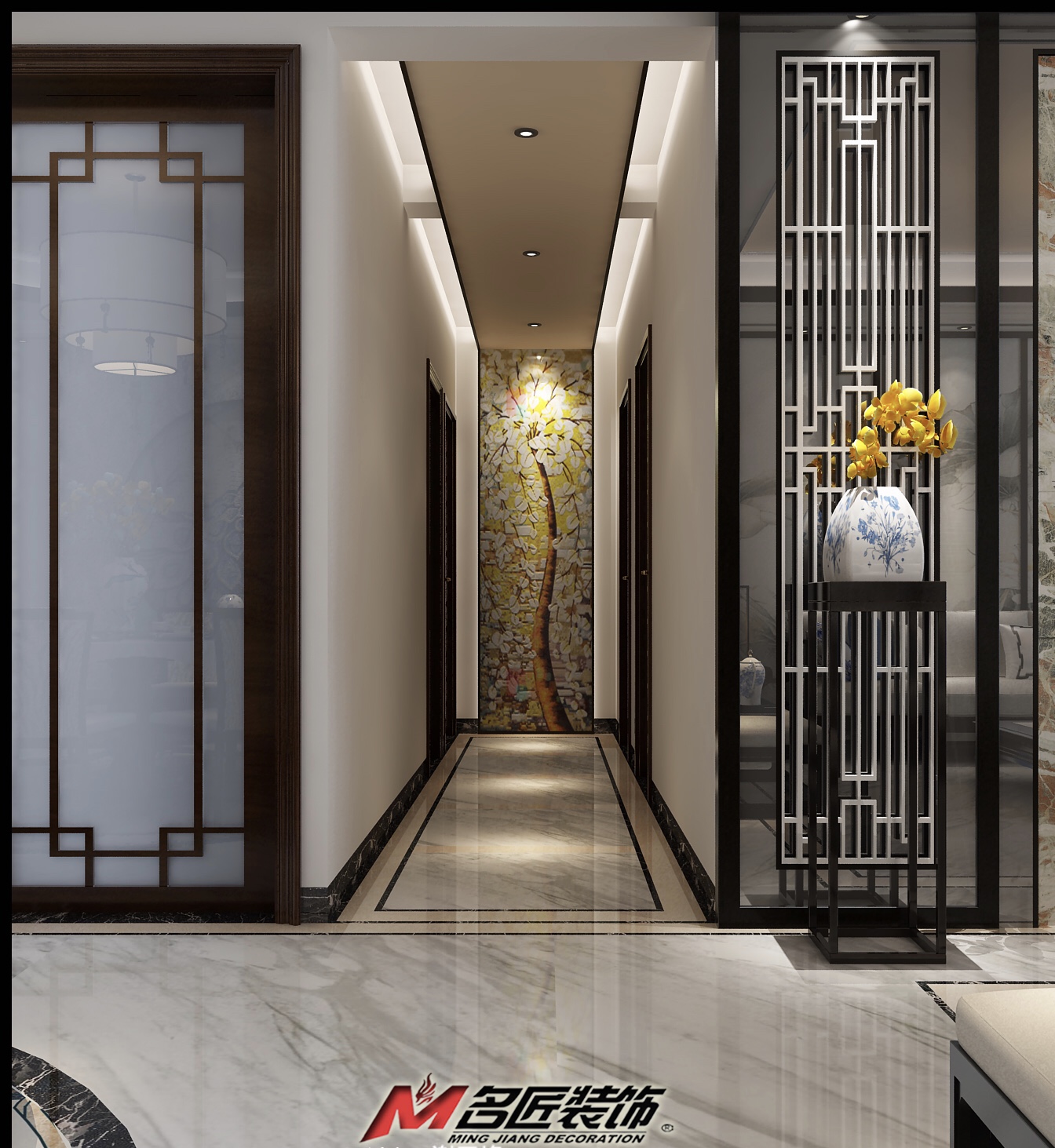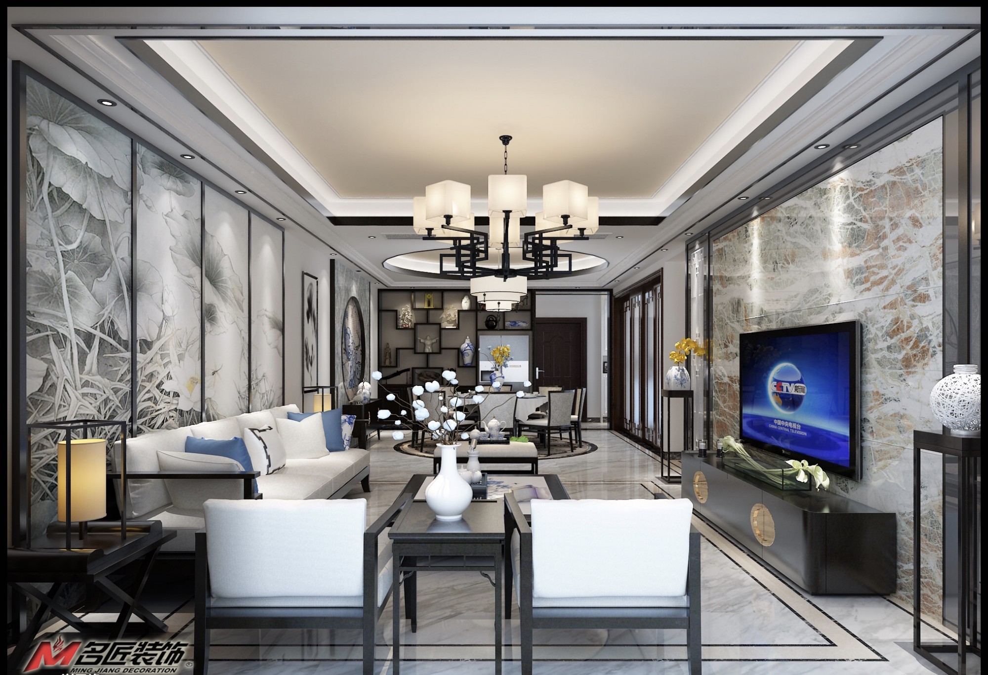 佛山同濟廣場四居新中式風格裝修效果圖