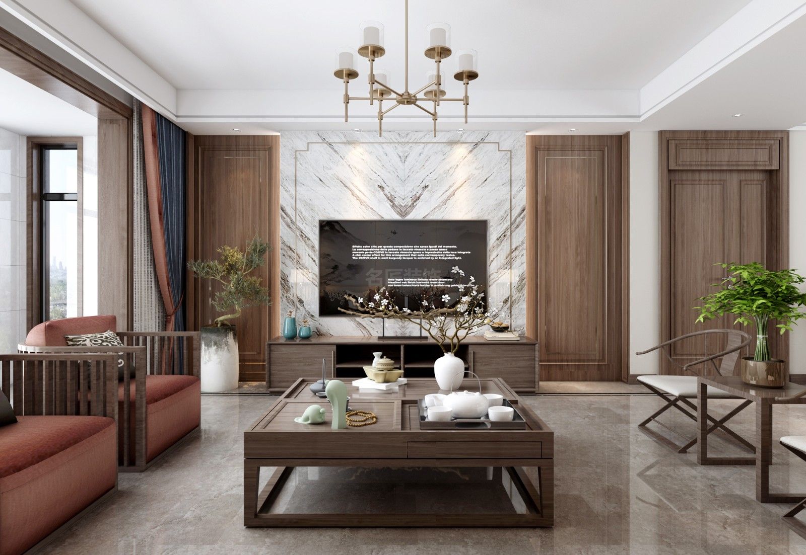 江門軒匯豪庭三居新中式風格裝修效果圖